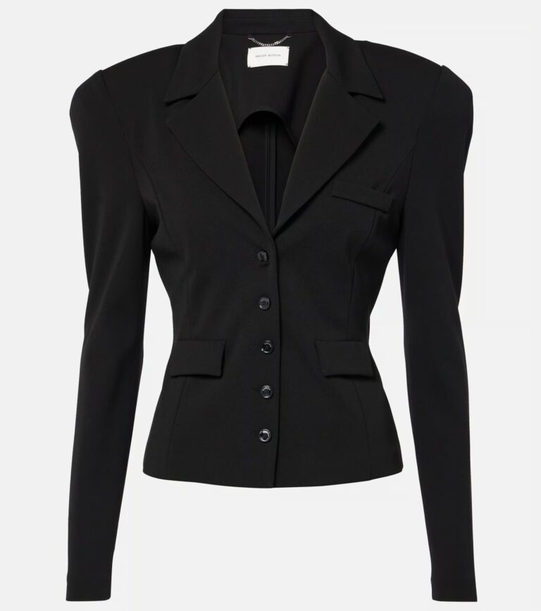 Viscose/polyamide jacket provides Black shade with button-down closure. Flap pockets add professional functionality.