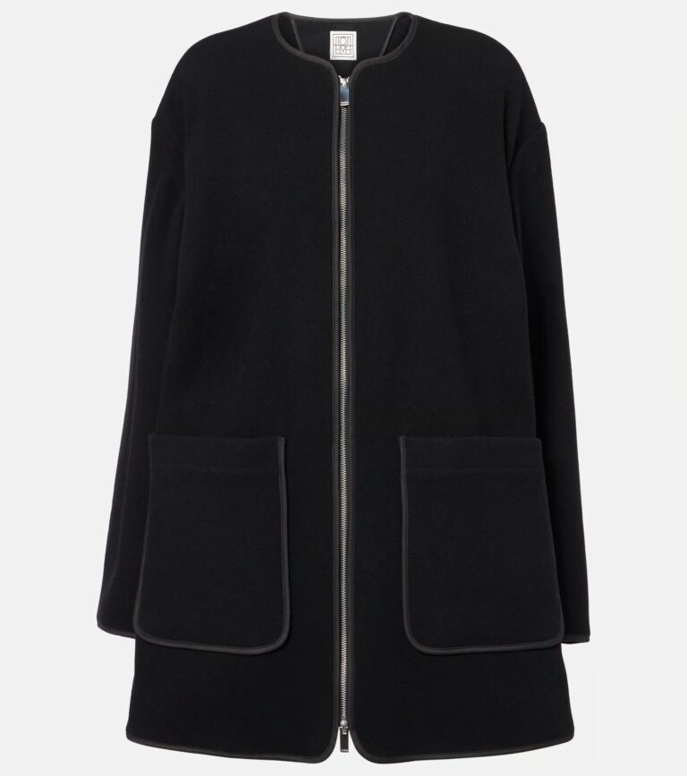 Wool/polyamide jacket features Black shade with two-way zipped front. Patch pockets add professional functionality.