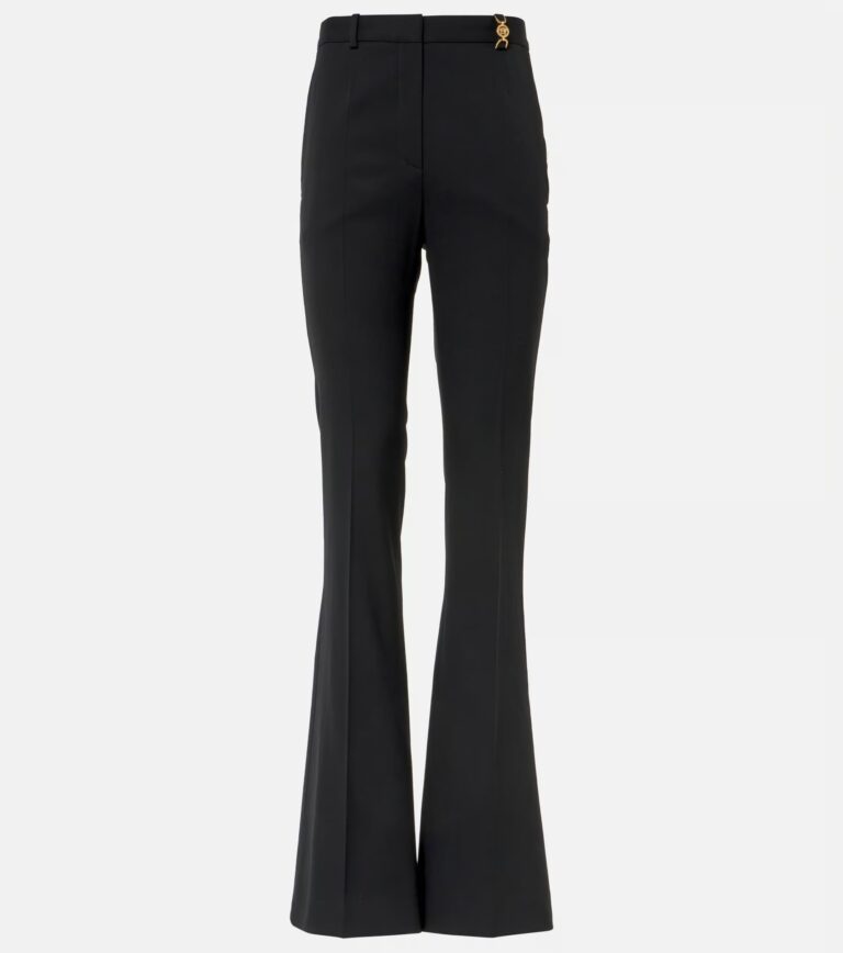 Wool trousers offer Black shade with zipper fly and button/hook fastening. Cupro/viscose lining provides professional comfort.