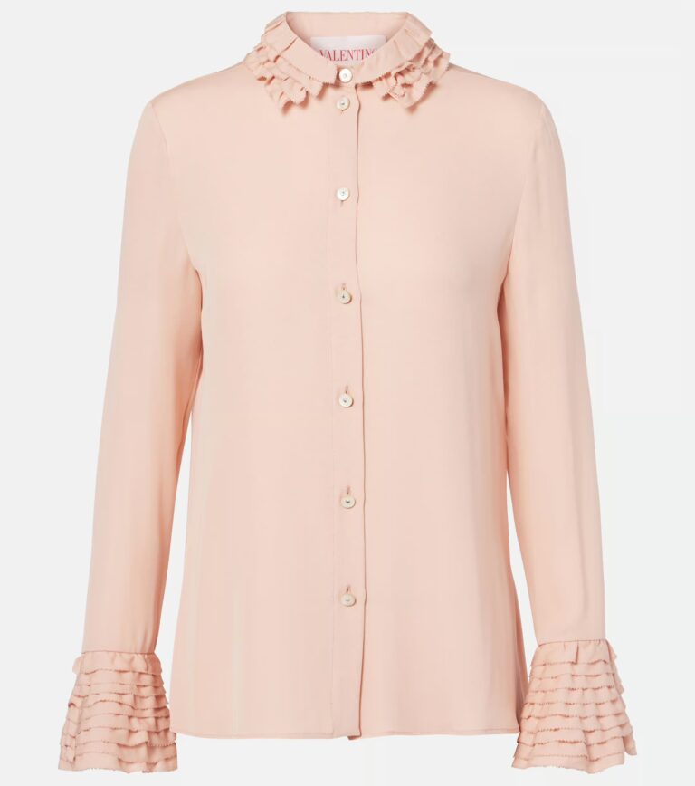 This Rose Mist top, made from 100% silk, adds a luxurious touch to any outfit. Featuring a button fastening and a garment bag for protection, this piece is dry clean only. Made in Italy, it is a perfect addition to a sophisticated wardrobe.