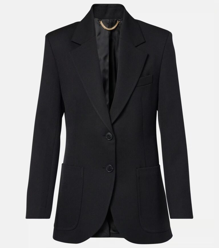 Wool jacket provides Black shade with single-breasted two-button closure. Patch pockets add professional functionality.