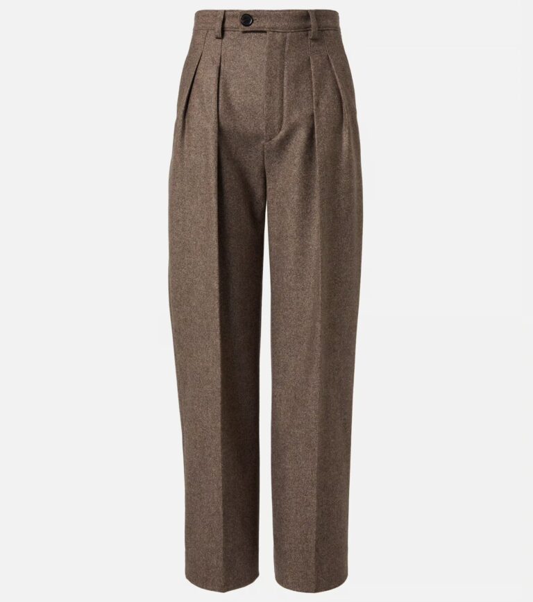 Wool/cashmere trousers offer Dark Granite Melange shade with zip/button fastening. Silk pocket lining adds professional luxury.
